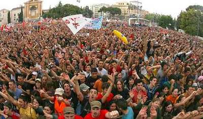 - assembramento sedizioso e mai autorizzato dagli uffici del Vescovato di Roma, esclusivamente competenti in materia di concessione dell'uso del prato antistante la Basilica di S. Giovanni in Laterano, dove solitamente viene allestito l'imponente palco utilizzato per comizi e concerti per tutta la durata della manifestazione;